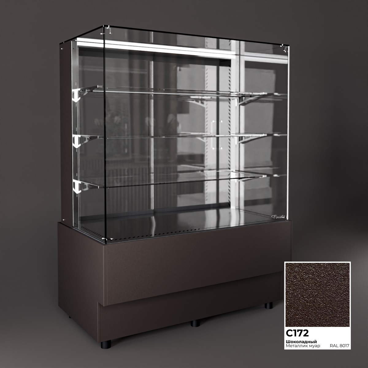 Холодильная витрина Finist AIR A-11-7-163 используется для демонстрационной выкладки, охлаждения и хранения кондитерских и хлебобулочных изделий на предприятиях общественного питания и торговли. Модель оснащена микропроцессорным блоком, автоматической оттайкой, светодиодной подсветкой каждой полки, 3 стеклянными полками и удобными дверцами купе. Материал цельнозаливного корпуса - окрашенная сталь, материал купола и полок - просветленное стекло, материал дна - зеркальная нержавеющая сталь.