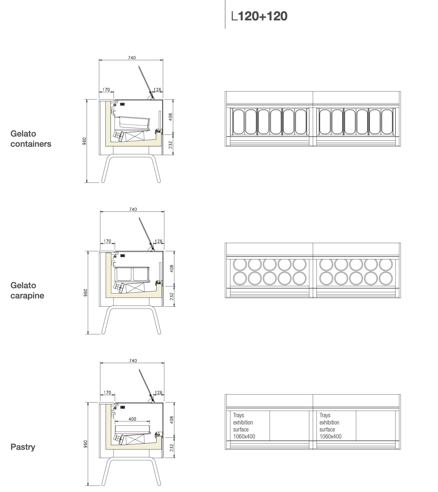 Благодаря инновационным технологиям размеры витрины сокращены до минимума: ISA ONESHOW STAND имеет в глубину всего лишь 720 мм. Благодаря этому она идеально подходит для установки в действующих заведениях. Витрина ISA ONESHOW STAND доступна также в версии для мороженого джелато, кондитерских изделий и шоколада.