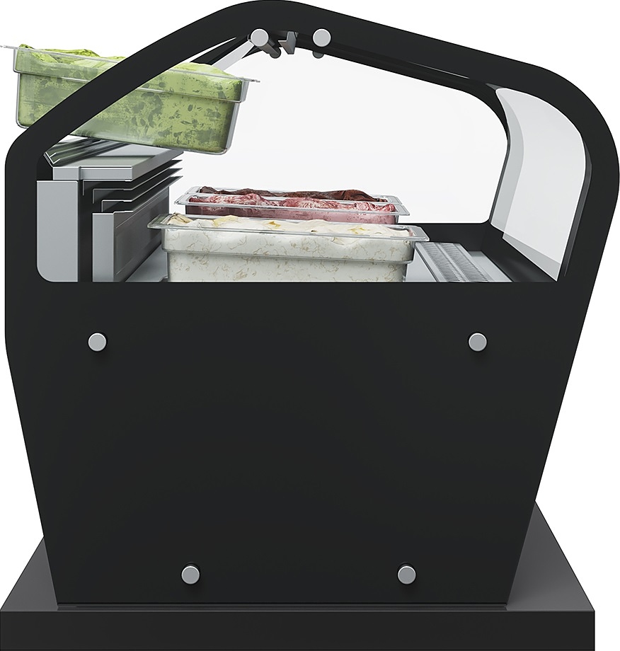 Опционально могут быть заказаны гастроемкости для мороженого из нержавеющей стали, дополнительные поддоны из нержавеющей стали под гастроемкости 360х165х150 мми альтернативное цветовое исполнение фронтальной панели из палитры RAL.