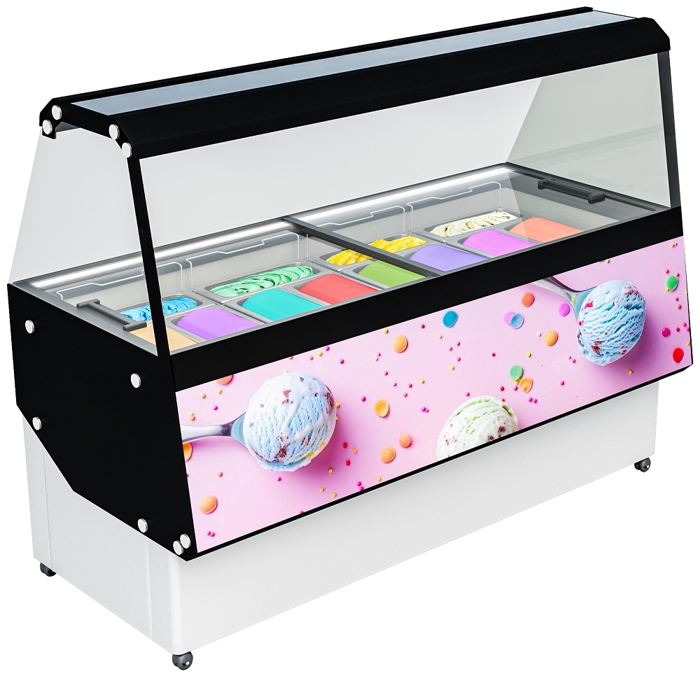 Витрина Frostor FRISMO SCOOPING-6 предназначается для охлаждения, хранения и демонстрационной выкладки мороженого на предприятиях общественного питания и торговли. Модель оснащена цифровым контроллером, принудительной оттайкой, подсветкой внутреннего объема и лайтбокса, скребком и колесами с тормозами. Материал корпуса - оцинкованная сталь, материал надстройки - закаленное стекло.