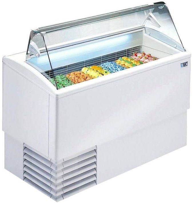 Витрина для мороженого ISA Isetta ST 6R используется на предприятиях общественного питания и торговли для демонстрации и хранения мороженого, сорбета и йогурта-мороженого. Каркас витрины изготовлен из углеродистой стали, окрашенной порошковой краской, внутренняя и внешние оболочки - из пластифицированной стали, поворотная крышка со стороны продавца - из метакрилата. Цельный корпус имеет изоляцию из пенополиуретана, вспененного углекислотой, без использования озоноразрушающих веществ.