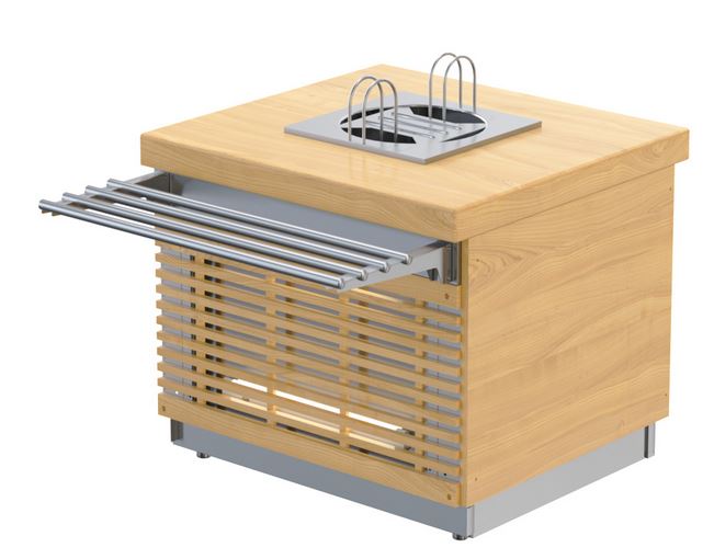 Модуль для подогрева тарелок ATESY Регата МПТ-440-940-02 используется на предприятиях общественного питания и торговли в составе линии раздачи Регата для хранения и поддержания в теплом состоянии тарелок. Тарелки укладываются на платформу, поддерживаемую с помощью пружинного механизма. Подогрев тарелок происходит с помощью ТЭНа. Ограничитель диаметра стопки тарелок регулируется. Сборная бескаркасная конструкция. Материал столешницы - нержавеющая сталь, материал ограничителей - нержавеющий пруток.