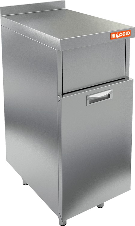 Мусорный бак HICOLD НБММБ-4/6БВ входит в состав барной линии на предприятиях общественного питания, торговли и пищевых производствах для сбора мусора. Материал корпуса - высококачественная нержавеющая сталь AISI 430, материал столешницы - нержавеющая сталь AISI 430, усиленная листом ДСП (толщина 1 мм).