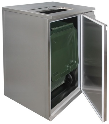 Simeco СХ1009 используется в ресторанах, на фудкортах и других предприятиях общественного питания для временного хранения пищевых отходов. Модель оснащена сдвижной крышкой сверху и распашной дверцей. Шкаф имеет наклонную ступеньку для удобного скатывания мусорного контейнера. Сварная конструкция выполнена из нержавеющей стали AISI 430.