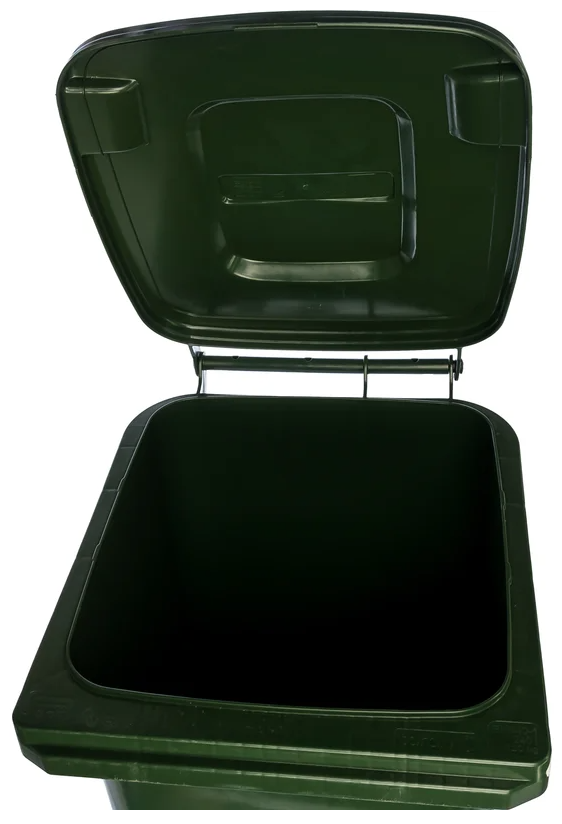 Мусорный контейнер 240л, зеленый предназначен для сбора мусора. Изготовлен из прочного пластика. Модель оснащена еврозахватами, что облегчает загрузку в мусоровоз.