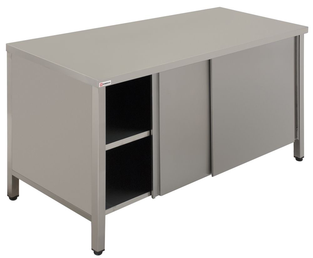 Стол производственный закрытый Simeco СЗE1607К используется на предприятиях общественного питания и торговли для приготовления различных блюд, а так же для хранения посуды и сыпучих продуктов. Модель закрыта с трех сторон. Имеет двери-купе и сплошную полку из нержавеющей стали. Каркас стола выполнен из нержавеющей стали AISI 430, столешница - из нержавеющей стали AISI 430. Ножки - труба 40х40 мм.