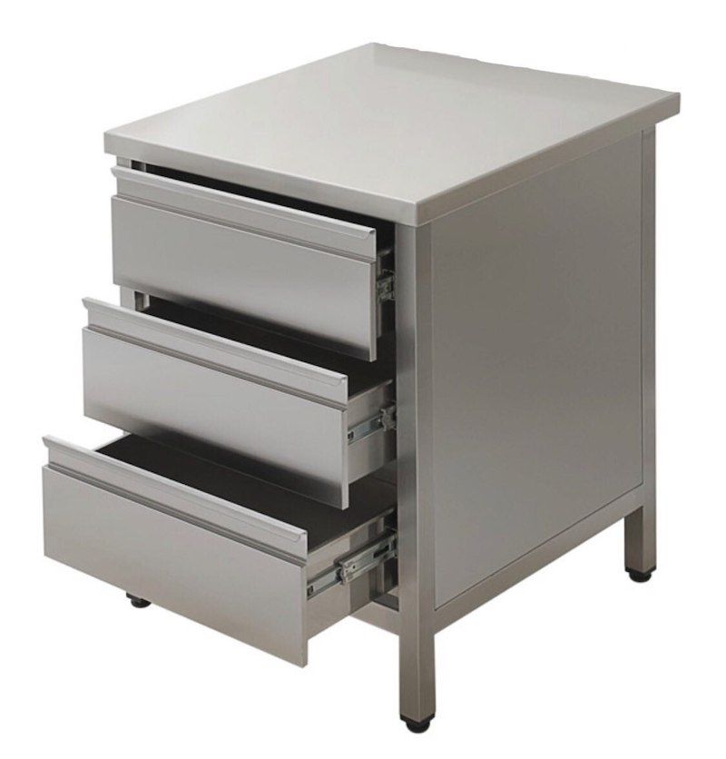 Стол производственный закрытый Simeco СЗE0606Я используется на предприятиях общественного питания и торговли для приготовления различных блюд, а так же для хранения посуды, сыпучих продуктов и специй. Модель закрыта с трех сторон. Имеет 3 выдвижных ящика из нержавеющей стали. Каркас стола выполнен из нержавеющей стали AISI 430, столешница - из нержавеющей стали AISI 430. Ножки - труба 40х40 мм.