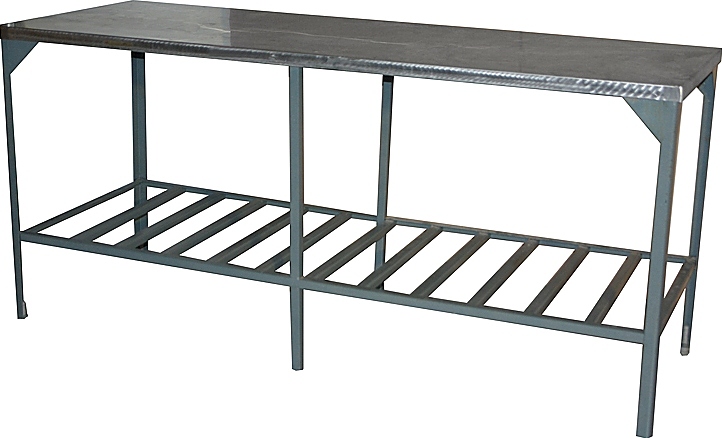 Производственный стол Техно-ТТ СР-1800 предназначен для разделки и обработки пищевых продуктов, а также для расстановки и хранения посуды и кухонного инвентаря на предприятиях общественного питания и торговли. Модель оснащена регулируемыми по высоте ножками, что позволяет компенсировать неровности пола. Сварной каркас выполнен из стали, покрытой лаком, столешница - из нержавеющей стали AISI 304.
