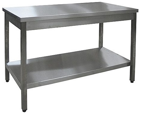 Стол Rada СО-10/6ПН предназначен для обработки продуктов питания, раскатки теста и хранения кухонной техники на предприятиях общественного питания и пищевой промышленности. Столешница изготовлена из нержавеющей стали AISI 304, каркас в виде профильной трубы 40х40 мм. Ножки оснащены вставками, позволяющими компенсировать неровности пола. Конструкция стола разборная.