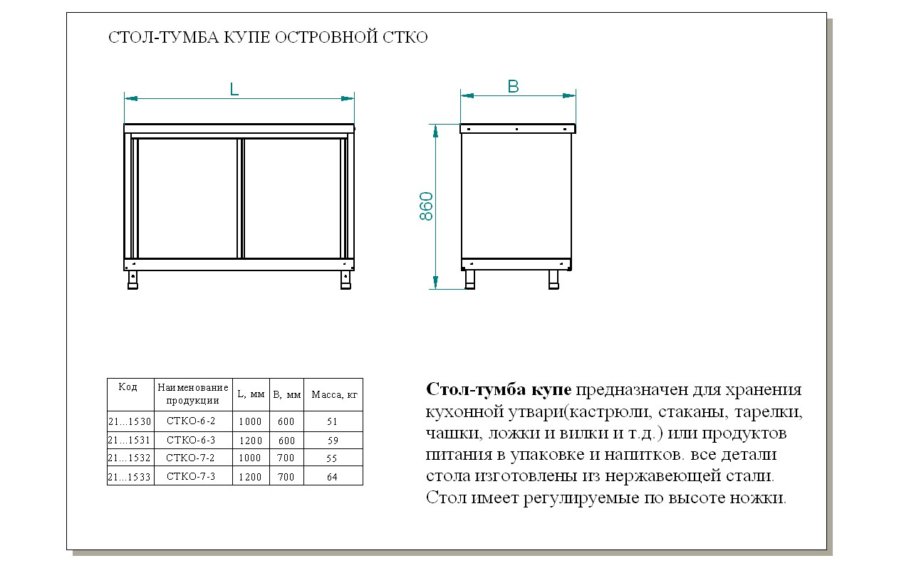 Производственный стол Abat СТКО-6-2 предназначен для раскатки теста, обработки ингредиентов для приготовления блюд, хранения посуды, кухонных принадлежностей и продуктов, не требующих специального температурного режима на предприятиях общественного питания и торговли. Модель оснащена регулируемыми по высоте полкой и ножками.