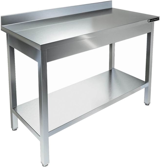 Производственный стол KAYMAN СП-222/0607 используется на предприятиях общественного питания и торговли для раскатки теста и обработки ингредиентов для приготовления блюд, а также как дополнительное место для установки и хранения кухонных приборов, инвентаря и сухих продуктов. Каркас выполнен из нержавеющей трубы AISI 430 40х40 мм, столешница - из нержавеющей стали AISI 430 толщиной 0,8 мм, усилена листом ЛДСП толщиной 16 мм.