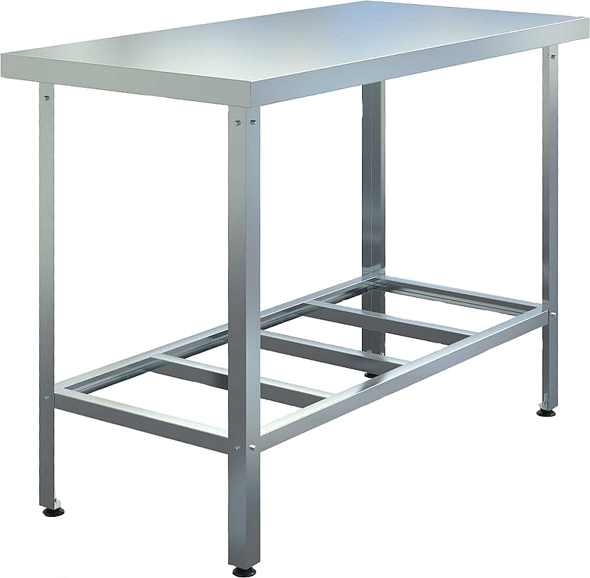 Производственный стол Assum СП-С-17/6 серии Standart используется на предприятиях общественного питания, торговли и пищевых производствах для работы с тестом, обработки ингредиентов перед приготовлением различных блюд и хранения кухонного инвентаря. Материал столешницы - нержавеющая сталь AISI 430 с листом ЛДСП, материал полки-решетки и каркаса - оцинкованная сталь (уголок 40х40 мм толщиной 0.7 мм), материал опор ножек - пластик.
