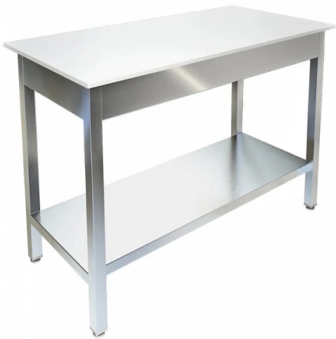 Производственный стол Техно-ТТ СП-423/1608 предназначен для раскатки теста и обработки ингредиентов для приготовления кондитерских и хлебобулочных изделий, а также для расстановки и хранения посуды и кухонного инвентаря на предприятиях общественного питания, торговли и пищевых производствах. Модель оснащена регулируемыми по высоте ножками, что позволяет компенсировать неровности пола. Материал разборного каркаса - труба (40x40 мм) из нержавеющей стали AISI 304, материал сплошной полки - нержавеющая сталь AISI 430, материал столешницы - полипропилен.