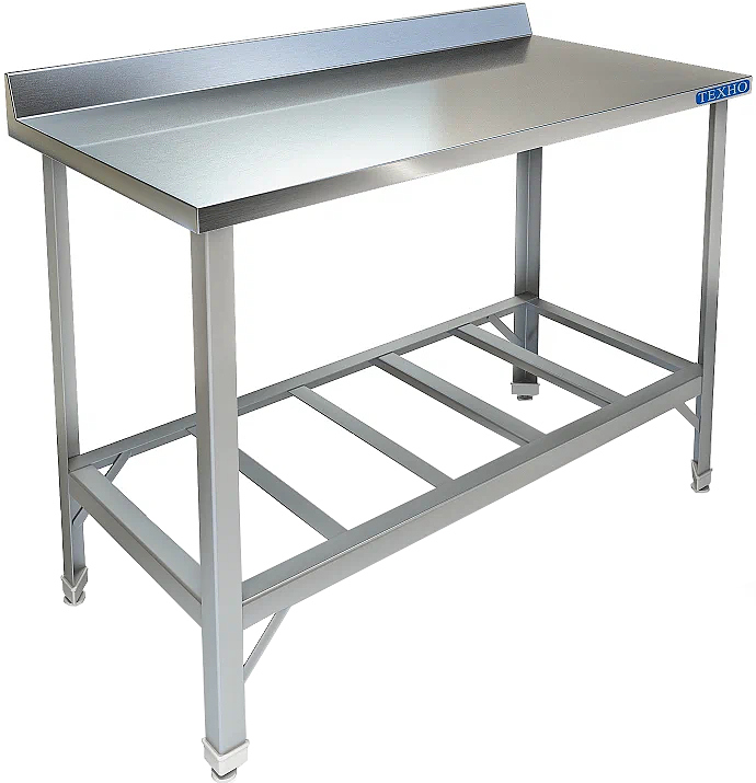 Производственный стол Техно-ТТ СПП-229/1908 предназначен для разделки и обработки пищевых продуктов, а также для расстановки и хранения посуды и кухонного инвентаря на предприятиях общественного питания, торговли и пищевых производствах. Модель оснащена обвязкой с 3 сторон и регулируемыми по высоте ножками, что позволяет компенсировать неровности пола. Материал разборного каркаса - труба (40x40 мм) из нержавеющей стали AISI 304, материал столешницы - нержавеющая сталь AISI 304, материал полки-решетки - нержавеющая сталь AISI 430.