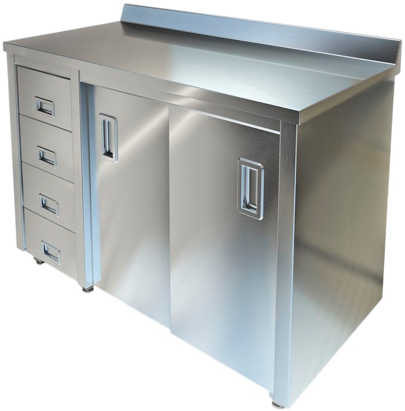 Производственный стол-тумба Техно-ТТ СПС-226/1300-Л предназначен для разделки и обработки пищевых продуктов, а также для расстановки и хранения посуды и кухонного инвентаря на предприятиях общественного питания, торговли и пищевых производствах. Стол оснащен бортом, 2 дверьми-купе и 4 выдвижными ящиками. Материал корпуса - нержавеющая сталь AISI 430, материал столешницы - нержавеющая сталь AISI 304, материал задней стенки - оцинкованная сталь.