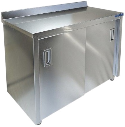 Производственный стол Техно-ТТ СПС-224/1707Н предназначен для разделки и обработки пищевых продуктов, а также для расстановки и хранения посуды и кухонного инвентаря на предприятиях общественного питания и торговли. Модель оснащена 3 дверьми-купе, бортом, полкой и регулируемыми опорами. Материал корпуса и дверей - высококачественная нержавеющая сталь AISI 304 толщиной 0.8 мм, столешницы - высококачественная нержавеющая сталь AISI 304, усиленная ЛДСП, полки и задней стенки - высококачественная нержавеющая сталь AISI 430 толщиной 0.8 мм.