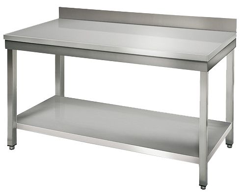 Производственный стол Kocateq SAT107A предназначен для раскатки теста и обработки ингредиентов для приготовления блюд, хранения посуды и кухонной утвари на предприятиях общественного питания и торговли. Столешница выполнена из нержавеющей стали AISI 304 толщиной 1 мм, усилена вкладкой из ДСП с ламинированием открытой сторон, каркас и полка - из нержавеющей стали AISI 201, ножки - из трубы квадратного сечения 40x40 мм, пятки - из пластика.