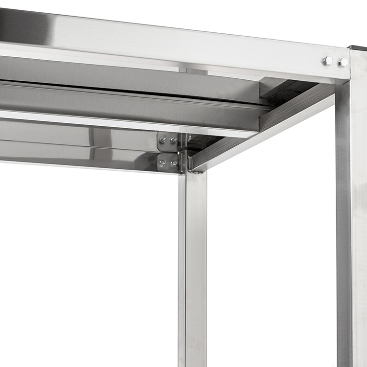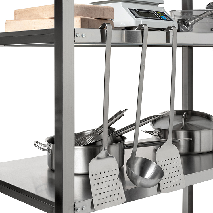 Кухонный стеллаж Кобор СКТР-60/30 предназначен для хранения посуды, различного инвентаря и сухих продуктов на предприятиях общественного питания и торговли. Модель оснащена регулируемыми по высоте ножками с опорами, которые не подвержены коррозии. Материал разборного каркаса - труба из нержавеющей стали (40x40 мм), материал полок - нержавеющая сталь AISI 430.