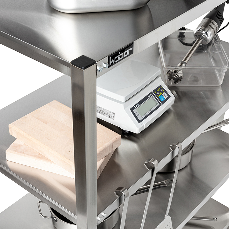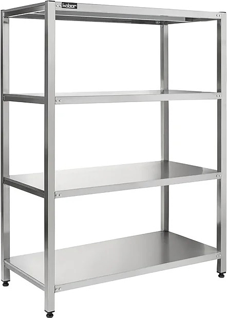 Кухонный стеллаж Кобор СКТР-120/60 используется на предприятиях общественного питания, торговли и пищевых производствах для хранения посуды, инвентаря и сухих продуктов. Ножки регулируются по высоте, опоры ножек не подвергаются коррозии. Тип каркаса - разборный (труба 40x40). Материал каркаса и полок - нержавеющая сталь AISI 430.