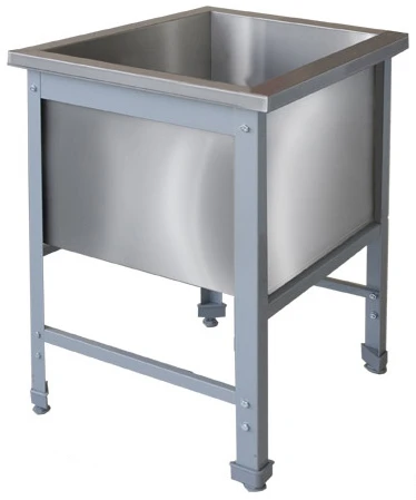 Модель оснащена ножками, регулирующимися по высоте. Корпус выполнен из нержавеющей стали, разборный каркас - из окрашенного уголка углеродистой стали.