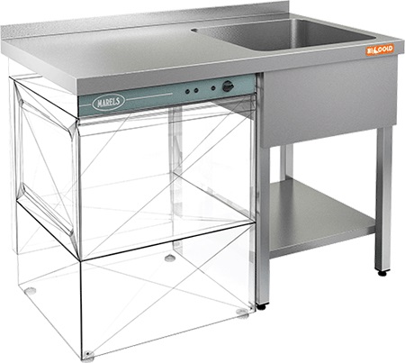 Моечная ванна HICOLD НСО1МП-12/7БП с крылом под посудомоечную машину используется на предприятиях пищевой промышленности, общественного питания и торговли для мойки продуктов питания, посуды и кухонных принадлежностей.