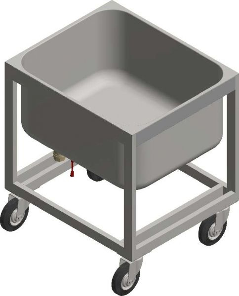 Передвижная ванна Техно-ТТ ВМ-10/655К используется на предприятиях общественного питания и торговли для засолки овощей, а также для мытья и ополаскивания продуктов, посуды и различного инвентаря. Модель оснащена краном. Сварной каркас выполнен из металлической трубы 40х20, покрытой краской, цельнотянутая мойка - из нержавеющей стали AISI 304.