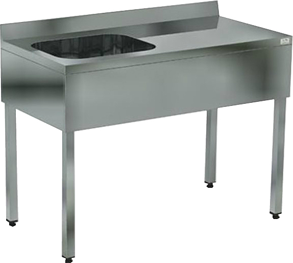 Емкость ванны Кобор ВМЦФР/1-120/60 Л/П выполнена из высококачественной пищевой нержавеющей стали, имеет подогнутую кромку для предотвращения травмирования рабочего персонала. Ножки изготовлены в виде уголка 40х40 мм из оцинкованной стали и регулируются по высоте, что помогает избежать наклона рабочей поверхности. Во избежание попадания воды и грязи у ванной имеется борт высотой 70 мм.