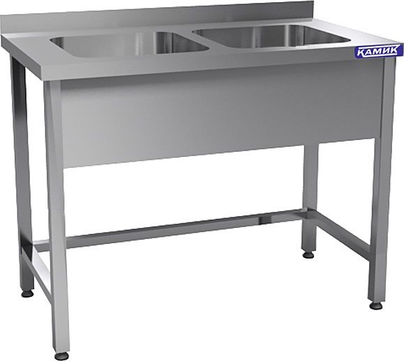 Моечная ванна КАМИК ВМ-2-40137 используется на предприятиях общественного питания и торговли для мойки посуды, овощей и фруктов. Сварной каркас и столешница выполнены из нержавеющей стали AISI 430, цельнотянутая емкость - из нержавеющей стали AISI 304.