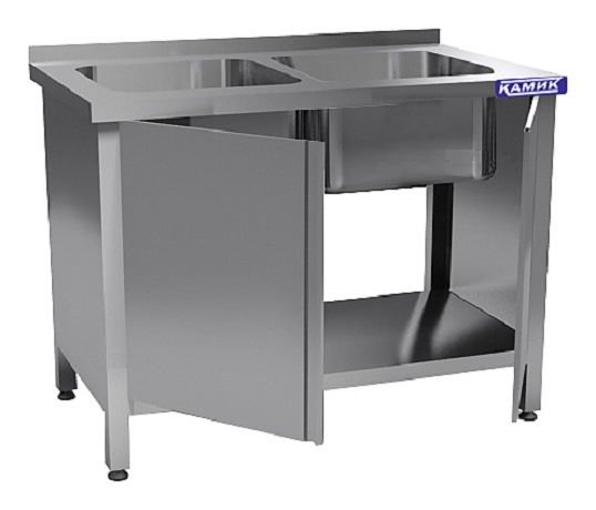 Моечная ванна КАМИК ВМ-2-411370 используется на предприятиях общественного питания и торговли для мойки посуды, овощей и фруктов. Сварной каркас и столешница выполнены из нержавеющей стали AISI 430, цельнотянутая емкость - из нержавеющей стали AISI 304.