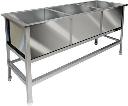 Моечная ванна KAYMAN ВМ-413/700 используется на предприятиях общественного питания и торговли для мойки продуктов питания, посуды и кухонных принадлежностей. Каркас выполнен из оцинкованного уголка, емкость - из нержавеющей стали AISI 304.