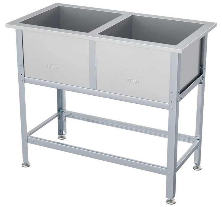 Моечная ванна ATESY ВСМ-С-2.430-02-Н серии Стандарт предназначается для мытья посуды и кухонного инвентаря, овощей и фруктов, а также для оттайки замороженных продуктов. Кромки ванны имеют безопасную фальцовку, углы зашлифованы. Ножки регулируются по высоте. Тип конструкции - разборная. Материал каркаса - уголок 40x40 из нержавеющей стали AISI 430 (толщина 0.8 мм), материал ванны - нержавеющая сталь AISI 304 (толщина 0.8 мм), материал опоры регуляторов высоты - нержавеющая сталь с пластиковым основанием.
