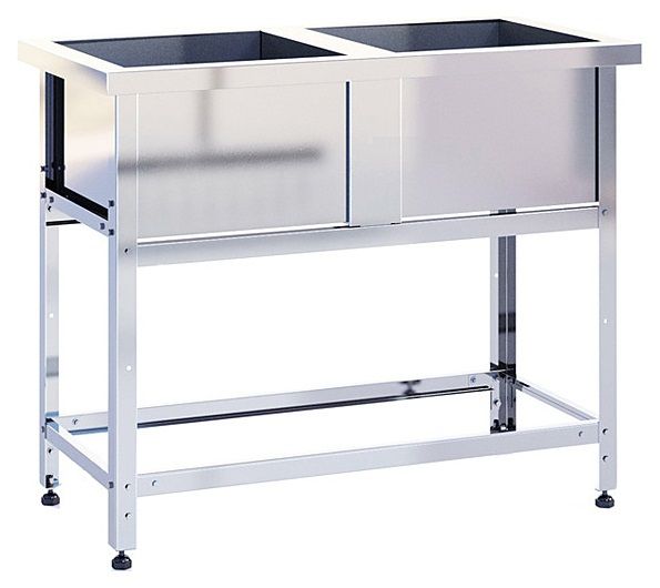 Моечная ванна EKSI ВМНЭ2 139708587 40 предназначена для мойки посуды, овощей и фруктов на предприятиях общественного питания и торговли. Модель оснащена сливными отверстиями и регулируемыми по высоте ножками. Каркас выполнен из уголка 40х40 мм из нержавеющей стали AISI 430 толщиной 1,5 мм, мойка - из пищевой нержавеющей стали толщиной 1 мм.