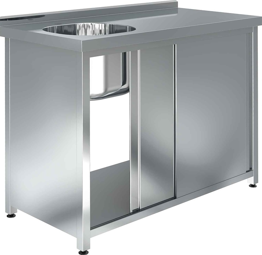 Моечная ванна Assum СПКБ-12/6-ВЛ4 серии Премиум используется на предприятиях общественного питания и торговли для мойки продуктов, посуды и прочего кухонного инвентаря. Модель оснащена 1 раковиной, бортом, дверями-купе, отверстием для смесителя и выпуском. Материал ванны - нержавеющая сталь AISI 304, материал столешницы - нержавеющая сталь AISI 430 с усилением ДСП, материал стенки, дверей и полки - нержавеющая сталь AISI 430, материал каркаса - нержавеющая сталь AISI 430 (труба 40х40 мм), материал опор ножек - пластик.
