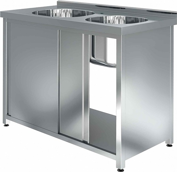 Моечная ванна Assum СПКБ-10/6-2В4 серии Премиум используется на предприятиях общественного питания и торговли для мойки продуктов, посуды и прочего кухонного инвентаря. Модель оснащена 2 раковинами, бортом, дверями-купе, отверстием для смесителя и выпуском. Материал ванны - нержавеющая сталь AISI 304, материал стенки, дверей и полки - нержавеющая сталь AISI 430, материал каркаса - нержавеющая сталь AISI 430 (труба 40х40 мм), материал опор ножек - пластик.