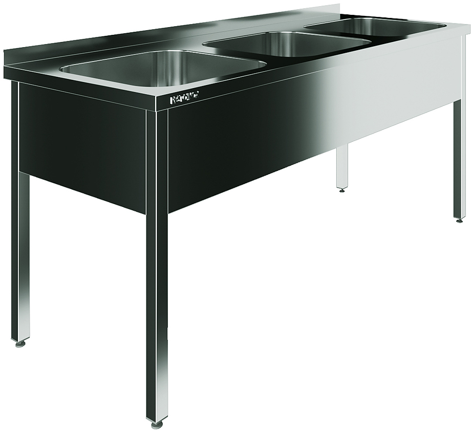 Моечная ванна Restoinox ВМЦ-3/16/7-Б предназначается для мытья посуды, кухонного инвентаря и продукции на предприятиях общественного питания, торговли и пищевых производствах. Ванна оснащена фартуком с 3х сторон. Материал каркаса - нержавеющая сталь AISI 430 (труба 40x40 мм), материал фартука - нержавеющая сталь, материал емкости - нержавеющая сталь AISI 304.