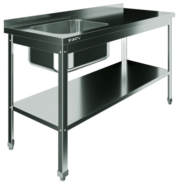 Моечная ванна Restoinox ВМЦР/1-15/6-БЛП-ЭЦ предназначается для мытья посуды, кухонного инвентаря и продукции на предприятиях общественного питания, торговли и пищевых производствах. Ванна оснащена рабочей поверхностью и полкой. Материал каркаса - уголок из оцинкованной стали, материал полки и столешницы - нержавеющая сталь AISI 430, материал емкости - нержавеющая сталь AISI 304.