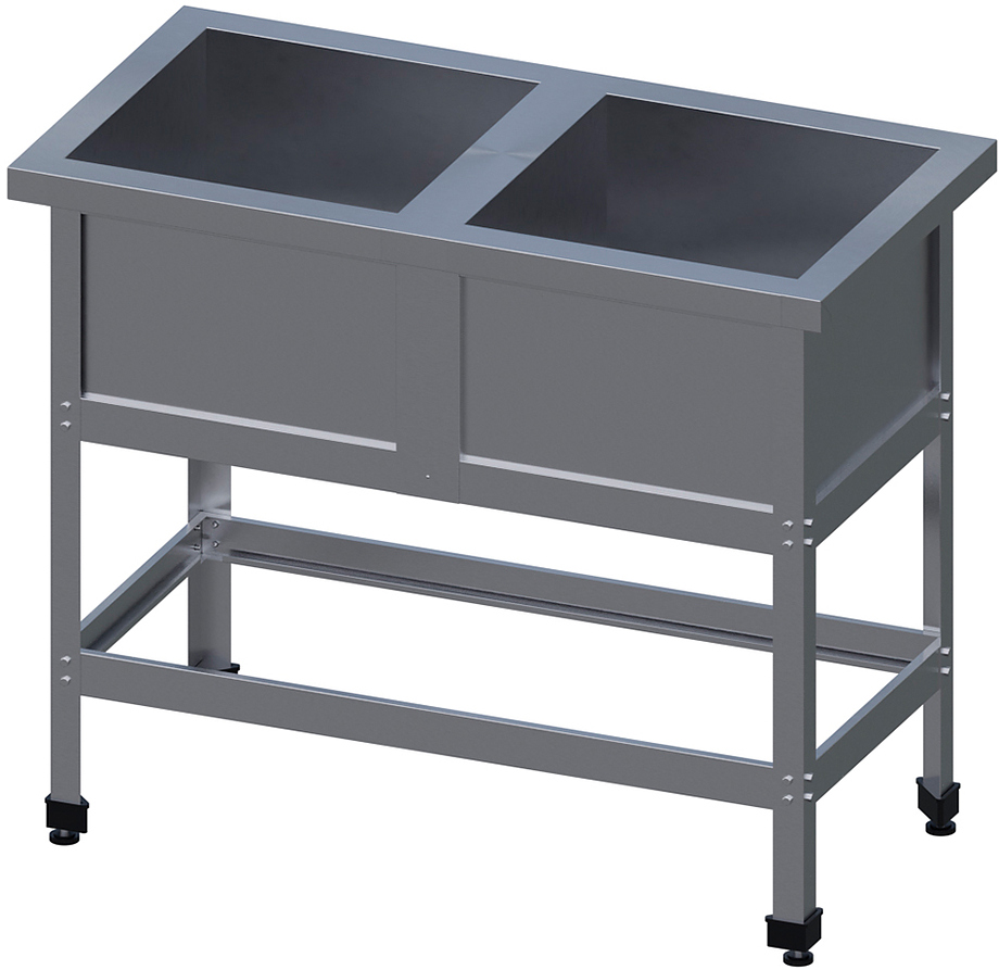 Ванна моечная VIATTO ВСМ‑2/480‑Н‑ЮТ используется на предприятиях общественного питания, торговли и пищевых производствах для мытья посуды, кухонного инвентаря и продуктов. Материал каркаса и ванны - высококачественная нержавеющая сталь.