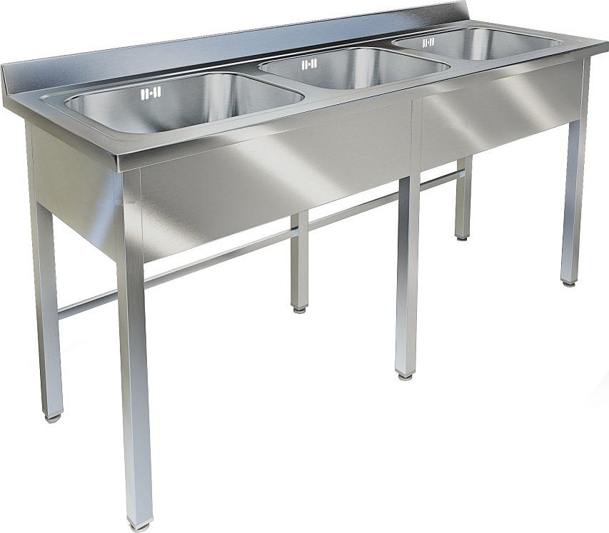 Моечная ванна Техно-ТТ ВМ-42/330 используется на предприятиях общественного питания, торговли и пищевых производствах для мытья и ополаскивания продуктов, посуды и различного инвентаря. Модель оснащена обвязкой ног по периметру, выпуском с нержавеющей решеткой, механическом запорным клапаном и регулируемыми опорами. На дне ванны ребра жесткости для снижения вибрации. Материал сварного каркаса - нержавеющая сталь AISI 430 (уголок 40x40 мм), материал емкостей - нержавеющая сталь AISI 304.