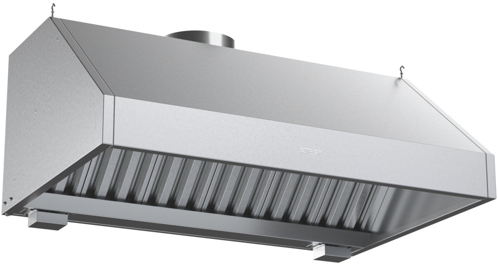 Зонт вытяжной ATESY ЗВН-Б-1-1200.800.500-02 используется на предприятиях общественного питания, торговли и пищевых производствах для очистки воздуха от различных паров, дыма, жира и утилизации продуктов горения. В модели предусмотрен жиросборник и легкосъемные лабиринтные фильтры. Материал корпуса - оцинкованная сталь, материал лабиринтных фильтров - нержавеющая сталь AISI 430.