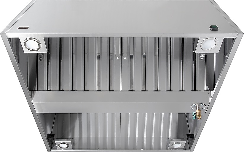 Вытяжной коробчатый зонт Luxstahl ЗКЦ 1800х800 используется для очистки от паров жира, масла, гари и cоздания оптимального микроклимата на предприятиях общественного питания, торговли и пищевых производствах. Модель оснащена 4 светильниками и корпусом коробчатого типа. Материал корпуса - нержавеющая сталь AISI 430, материал задней и верхней панели - оцинкованная сталь.