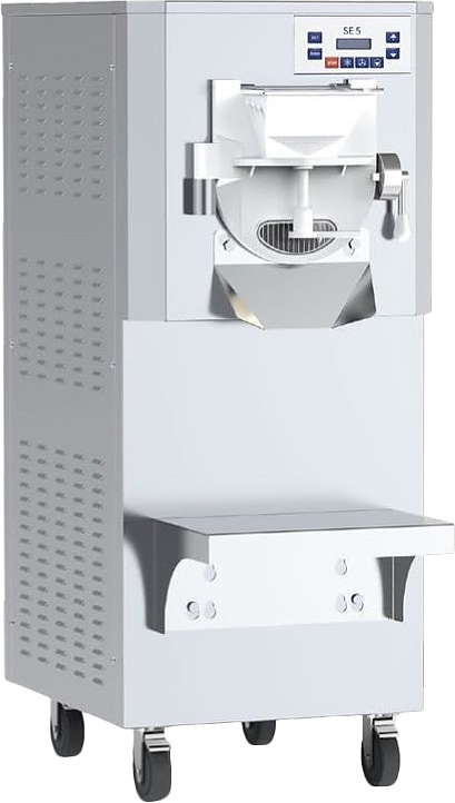 Фризер CARPINI SE5 A используется для приготовления твердого мороженного на предприятиях общественного питания, торговли и пищевых производствах. Модель оснащена электронным контроллером, цифровым дисплеем, горизонтальным цилиндром, трехлопастной мешалкой и повторными колесами. Материал корпуса - высококачественная нержавеющая сталь, материал цилиндра и основания мешалки - высококачественная нержавеющая сталь AISI 304, материал лопастей - полимер.