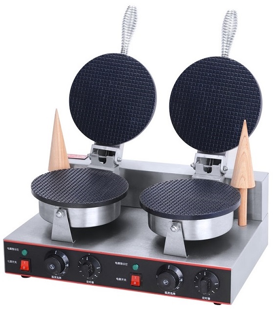 Вафельница Hualian HCB-2 используется для выпечки круглых вафель на предприятиях общественного питания, торговли и пищевых производствах. Модель оснащена электромеханическим управлением, термостатом и плавной регулировкой температуры для каждого спота. Материал рабочей поверхности - чугун с тефлоновым покрытием.