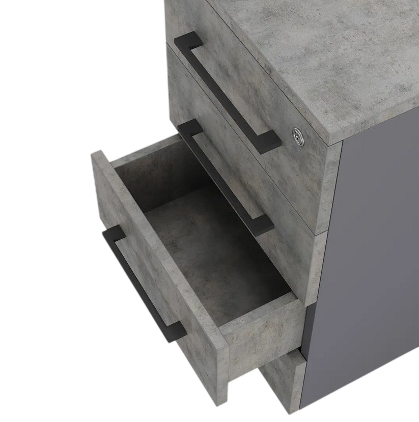 Приставная тумба Кобор TS4-40/70 graphite/chicago предназначена для хранения документов, канцелярских принадлежностей и других мелочей в офисных и коммерческих помещениях, а также в учебных заведениях. Тумба станет удобным дополнением рабочего пространства, и её можно разместить как под столом, так и рядом с ним, адаптируя пространство под свои задачи. Модель оснащена 4 выдвижными ящиками и 4 регулируемыми по высоте опорами. Материал корпуса - прочный ЛДСП толщиной 16 мм, материал столешницы и ящиков - прочный ЛДСП толщиной 25 мм, материал задней стенки - окрашенный металл.