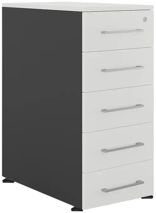Приставная тумба Кобор TS5-40/70 black/premium предназначена для хранения документов, канцелярских принадлежностей и других мелочей в офисных и коммерческих помещениях, а также в учебных заведениях. Тумба станет удобным дополнением рабочего пространства, и её можно разместить как под столом, так и рядом с ним, адаптируя пространство под свои задачи. Модель оснащена 5 выдвижными ящиками и 4 регулируемыми по высоте опорами. Материал корпуса - прочный ЛДСП толщиной 16 мм, материал столешницы и ящиков - прочный ЛДСП толщиной 25 мм, материал задней стенки - окрашенный металл.