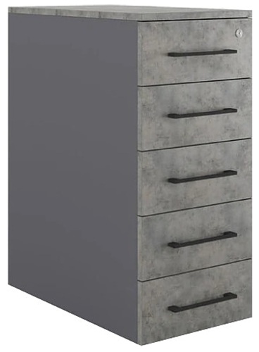Приставная тумба Кобор TS5-40/50 graphite/chicago предназначена для хранения документов, канцелярских принадлежностей и других мелочей в офисных и коммерческих помещениях, а также в учебных заведениях. Тумба станет удобным дополнением рабочего пространства, и её можно разместить как под столом, так и рядом с ним, адаптируя пространство под свои задачи. Модель оснащена 5 выдвижными ящиками и 4 регулируемыми по высоте опорами. Материал корпуса - прочный ЛДСП толщиной 16 мм, материал столешницы и ящиков - прочный ЛДСП толщиной 25 мм, материал задней стенки - окрашенный металл.