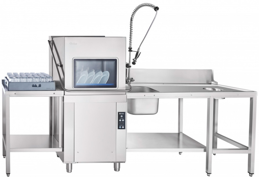 Купольная посудомоечная машина Abat МПК-1100К используется на предприятиях общественного питания и торговли для мойки кастрюль, тарелок, стаканов, бокалов, столовых приборов, а также гастроемкостей и противней. Модель оснащена электронной панелью управления и ванной с скругленными углами, облегчающими гигиеническую уборку машины.