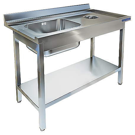 Стол Техно-ТТ СПО-523/1207П/ПравКр является приставным к посудомоечной машине и предназначается для мытья посуды и кухонного инвентаря на предприятиях общественного питания, торговли и пищевых производствах. Моечная ванна располагается слева, отверстие для сбора отходов справа, стол устанавливается справа. Ножки регулируются по высоте. Каркас - разборный. Материал каркаса - нержавеющая сталь AISI 430 (труба 40x40), материал полки, столешницы и цельнотянутой ванны - нержавеющая сталь AISI 304.