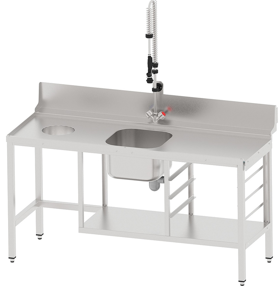 Предмоечный стол Abat СПМП-7-7 предназначается для совместного использования с купольными и туннельными посудомоечными машинами моделей МПК и МПТ на предприятиях общественного питания, торговли и пищевых производствах. Модель оснащена моечной ванной, отверстием для отходов и регулируемыми ножками. Материал изделия - высококачественная нержавеющая сталь.