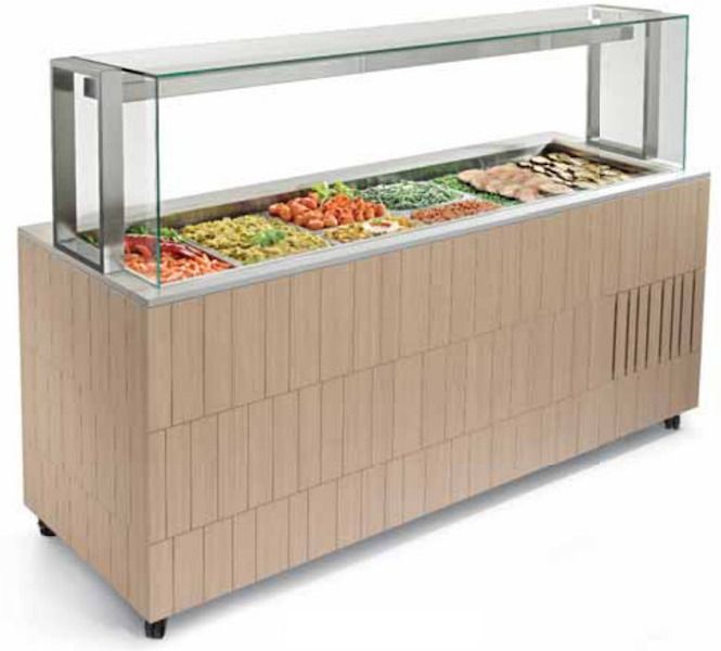 - Ванны из нержавеющей стали AISI 304 или поверхности с подогревом/охлаждением из агломерата Quarzo