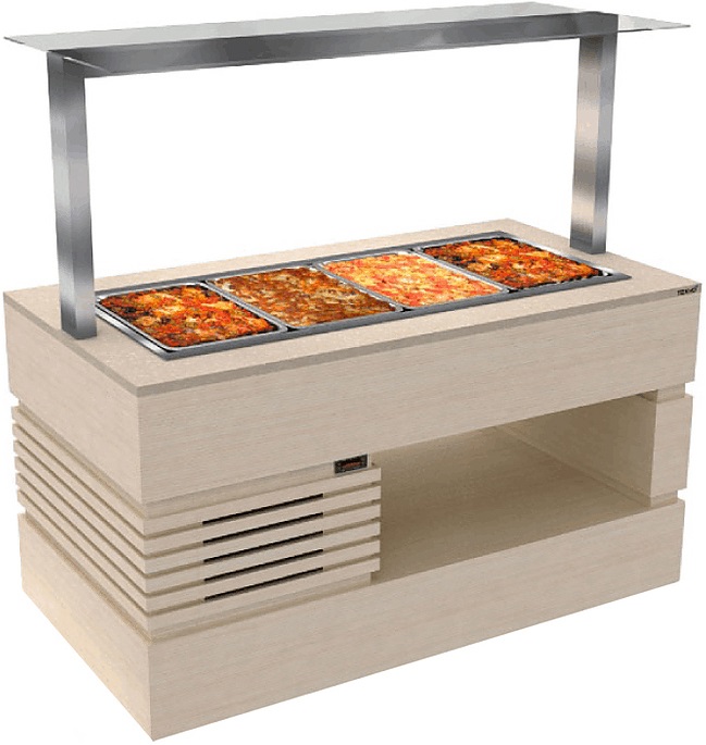 Техно-ТТ БМВ-212/1946 используется на предприятиях общественного питания и торговли для выкладки, хранения и раздачи продуктов. Каркас - оцинкованная сталь, фасад выполнен из шпона и МДФ, столешница изготовлена из искусственного камня. В модели предусмотрена ниша.